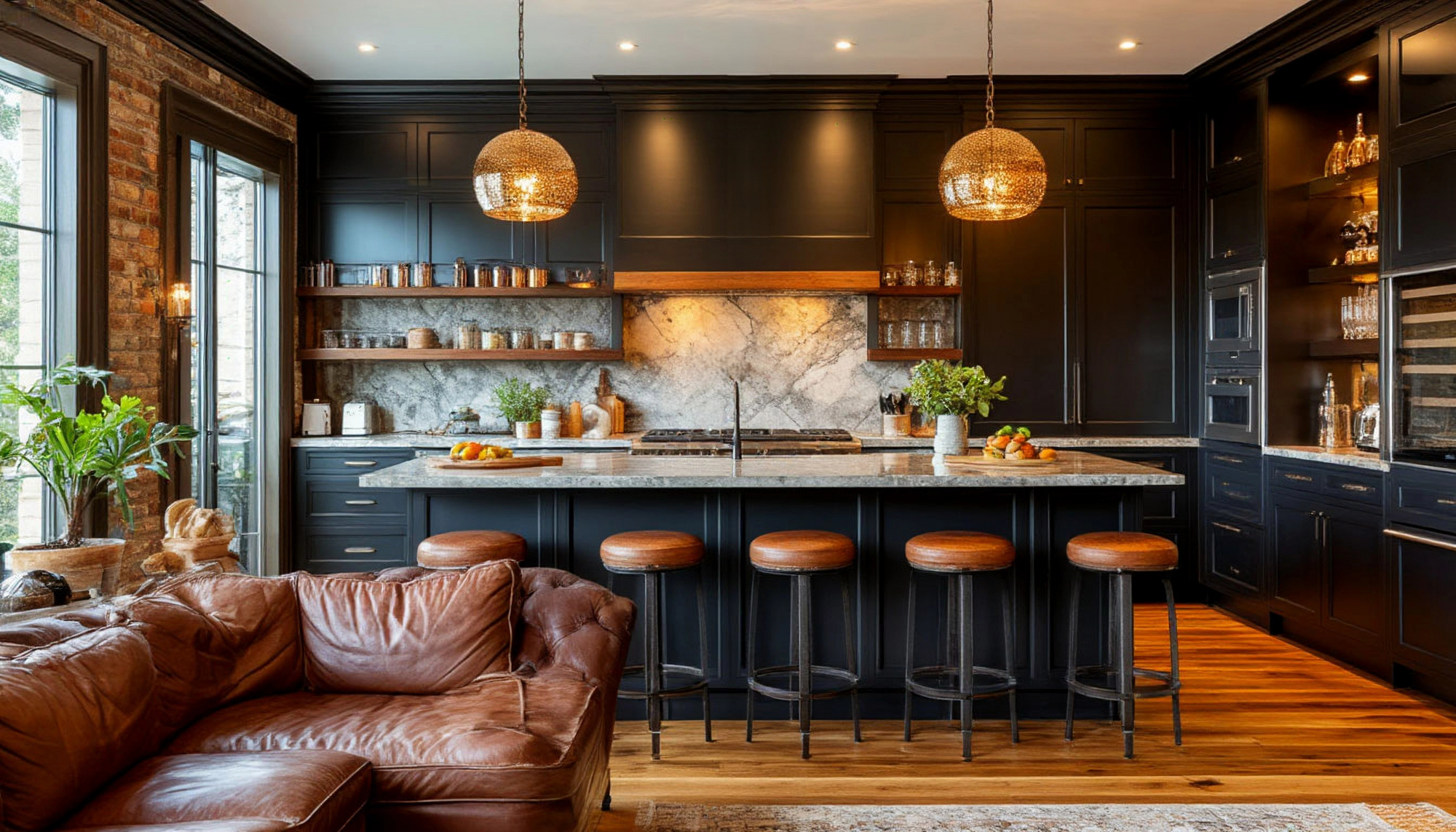 Кухни в барном стиле ценятся за возможность объединять функциональность и социальное пространство. "Дарвелл" продолжает эту традицию, предлагая решение, где каждая деталь подчеркивает характер интерьера и владельца. Черная кухня и коричневый кожаный диван создают атмосферу мужской глубины и уверенности, а лаконичный дизайн позволяет ощущать пространство свободным и структурированным одновременно. Каждое утро здесь начинается с удобства, а вечера наполнены теплом, комфортом и интеллектуальной гармонией.
