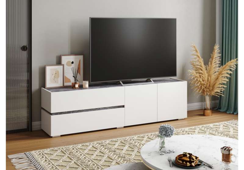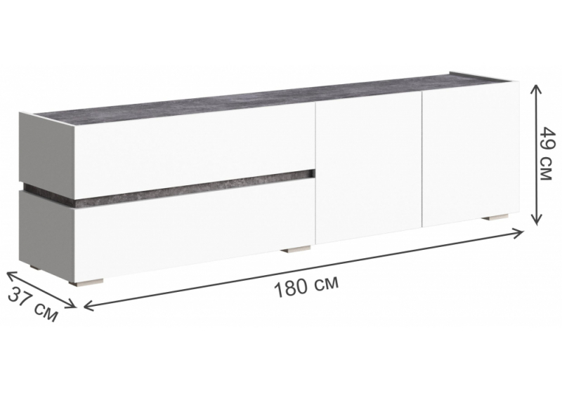 ТВ-тумба Атлон белый / бетон темный (180x37x49).