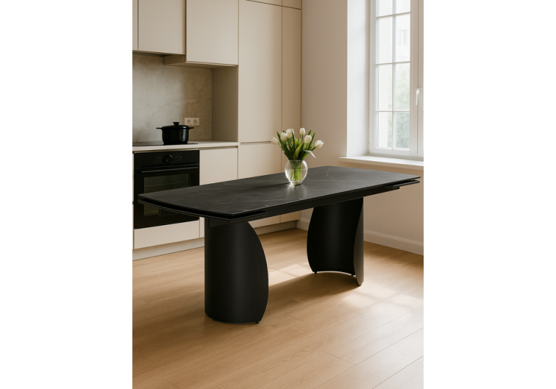 Керамический стол Готланд 180(240)х90х79 черный мрамор / черный (90x79)