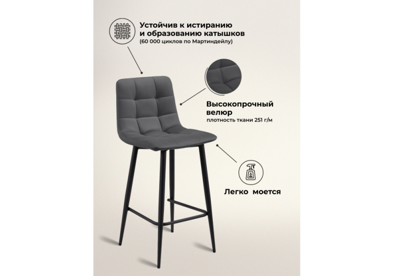 Барный стул полубарных Симпл 2 шт темно-серый / черный (43x42x93).