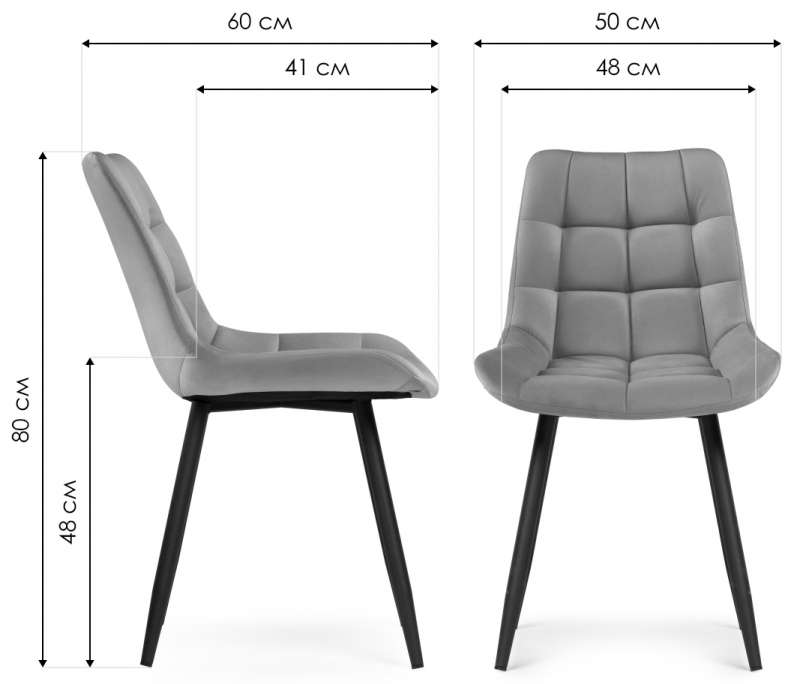 Стул на металлокаркасе Челси велюр светло-серый / черный (50x60x80).